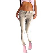 if she Pantalón Vaquero pitillo Push Up Elástico de Mujer Lavado en Beige con tapeta con botones oblicuos Largos