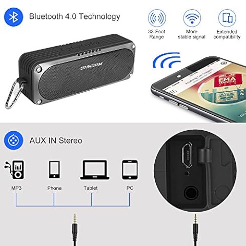 🎧【 IMPERMEABILE 20 W LOUD SPEAKER BLUETOOTH 】 per cellulare, PC, iPad, iPod, iPhone, tablet, MP3/MP4, e molto altro ancora – Audio stereo con bassi Dual driver altoparlanti, accoppiamento bluetooth V4.0 stabile per 33 metri di distanza, 4400 mAh batteria ricaricabile USB per 15 ore di riproduzione, microfono incorporato per chiamate in vivavoce, ingresso AUX da 3.5 mm per i dispositivi senza Bluetooth, per uso domestico, doccia, ufficio, TV o altoparlante del computer per uso esterno.