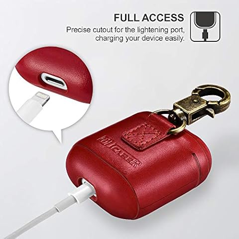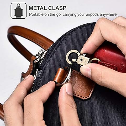 ★ [comodo & portatile]: con il ritaglio preciso, è possibile caricare il tuo airpods – Cuffie senza rimuovere la custodia in pelle. Rame portachiavi rende la custodia portatile.