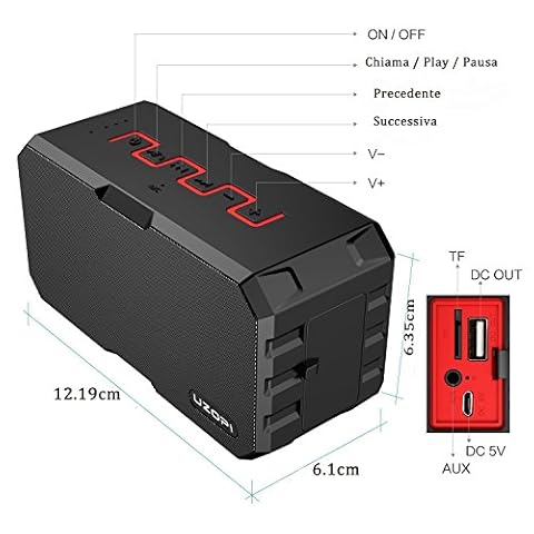 ➤ IP67 Grado impermeabile: Altoparlanti impermeabili incorporati di precisione, la protezione contro l’immersione temporanea (fino a 20 minuti in un metro d’acqua). Godetevi lo stereo hi-fi nel vostro bagno o in piscina o in spiaggia !