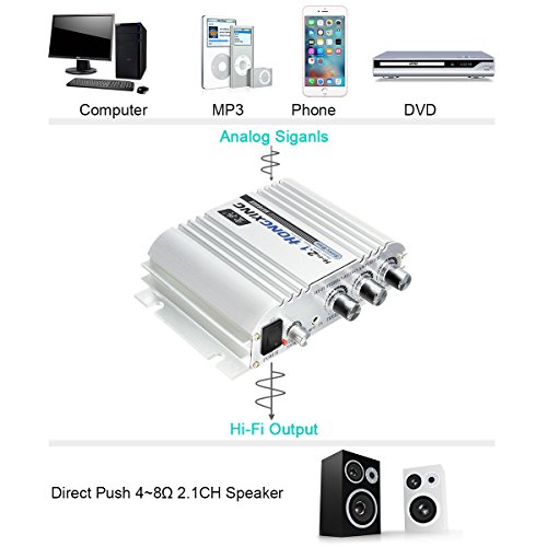 Amplificatore Tipo: Amplificatore Hi Audio Potenza costante: 40 W x 2 (Uscita canale sinistro e destro) 60 W x 1 (Uscita per basso pesante)