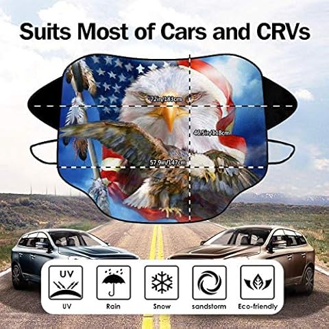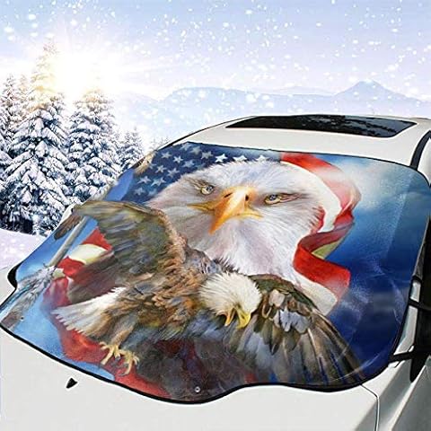 Bald Eagle with American Flags Car Windshield Snow Cover Sunshades Protector Ice Frost Guard Protection Summer Winter Cover for Most Cars SUVs