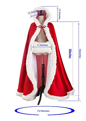 Il mantello con cappuccio in peluche ricco opaca satinata.Tutti i promontori sono completamente foderate.Impreziosito con finto visone ritaglio, fissato al collo con sbieco raso cravatte – concepito appositamente per tutte le occasioni formali come matrimoni, prom, homecoming, vacanza, crociera, sfere in stile militare, quinceanera e così via. Il cappuccio è capiente e abbastanza grande per adattarsi sopra alte acconciature e permette una maggiore altezza per diademi o accessori.