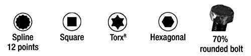 Tale chiave è l’ideale per viti con testa a profilo: esagonale, Spline , quadrato, Torx e chiavi rovinate.
