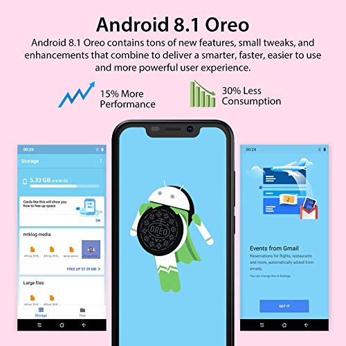 🍎【L’ultimo Sistema Operativo Android 8.1 Oreo】Questo cellulare economico è equipaggiato con l’ultimo sistema operativo Android 8.1 Oreo, rendendo il telefono mobile più veloce e più performante, migliorando l’efficienza d’uso e permettendo un’esperienza straordinaria. Questo sistema può risparmiare più spazio di memoria e una gestione intelligente ti consente di avere più appplicazioni installate nel tuo smartphone android. Il sistema supporta Google, YouTube e Gmail.