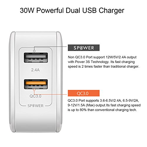 ?Porta non QC?–Il Caricatore USB 5V / 2.4A con Power 3S Technology ti offre una velocità di caricamento più veloce, pari a 2 volte più veloce rispetto al caricatore tradizionale; Potrebbe anche riconoscere automaticamente i dispositivi collegati e la corrente di carica ottimale di uscita.