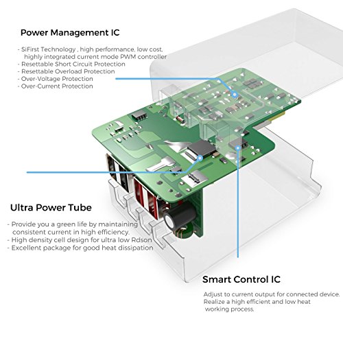 Capacità Potente: Con uscita da 34W / 6.4A, il caricatore da muro con 4-porte assicura una caricatura al massimo della velocità garantendo anche – sicurezza – fino a 2.4 ampere per porta per qualsiasi dispositivo USB ricaricabile. Un caricatore che si prende cura del tuo tempo e delle tue batterie.