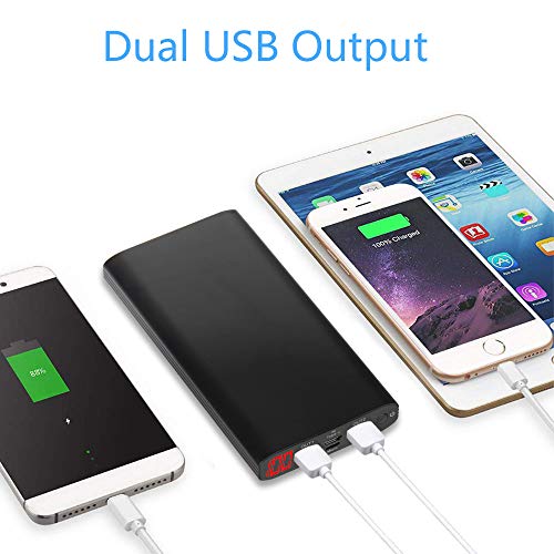Carica ad Alta Velocità Della Power Bank: batteria esterna con 2 porte di uscita USB ( 5 V / 2,1 A), consentendo la ricarica di 2 dispositivi contemporaneamente alla massima velocità.