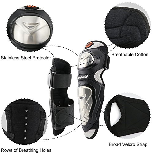 Il design pre-curvato si adatta al corpo mentre è in posizione di guida, appositamente progettato per prevenire lesioni a ginocchia e gomiti in vari sport come motociclismo, motocross, sci, pattinaggio, ecc..