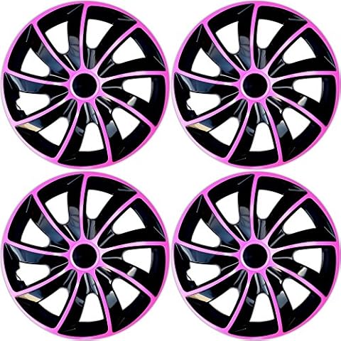 Vi offriamo 4 nuovo originale confezionato, copricerchi in Top cerchioni in alluminio look e top design, in formato 14 pollici e colore nero – Pink universale e adatto per tutti i veicoli e veicoli con pneumatici da 14 pollici e cerchi in acciaio da 14 pollici. (non adatto per furgoni e fuoristrada)