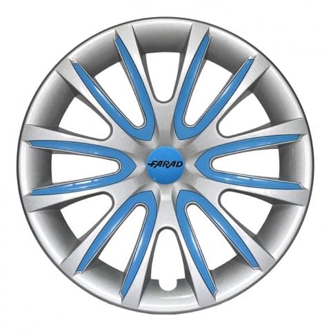 Set di 4 copricerchi compatibili con tutte le vetture, tranne furgoni, camion e fuoristrada. Il kit comprende 4 copricerchi color argento + 24 inserti e 4 loghi “Blue”
