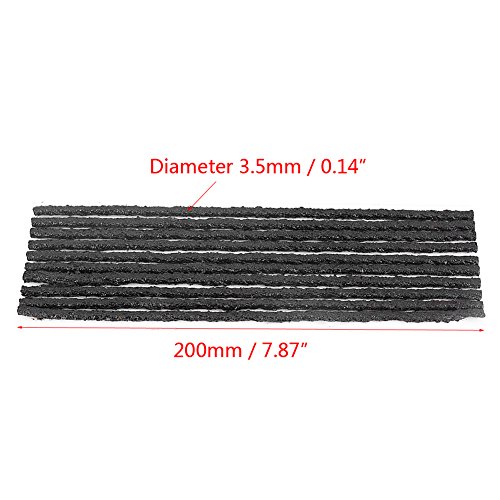 【Nessuna necessità di colla】 Queste strisce di gomma utilizzate per riparare la foratura del pneumatico in modo rapido ed efficace. È adatto per pneumatici tubeless, senza bisogno di colla. Facile da usare, ma l’operazione professionale è altamente raccomandata. Dimensioni (L × Dia): 200 × 3,5 mm / 7,87 “× 0,14”