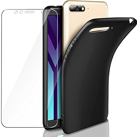 Nero Silicone cover + Pellicola Protettiva in Vetro Temperato per Huawei Y6 2018, fornire tutto tondo protezione.