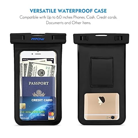 【 certificata IPX8 impermeabile 】 Mpow custodia impermeabile fornire acqua, neve e polvere prevenzione per il tuo telefoni cellulari, carte di credito, cashes and etc. Perfetti per nuoto, pesca, canottaggio, snorkeling e altre attività.