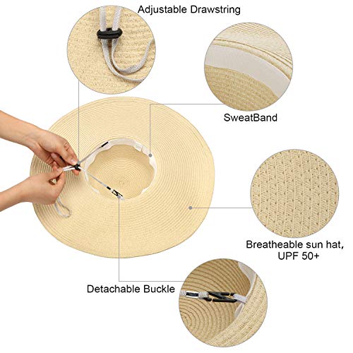 ❤ Cordino del vento: coulisse regolabile per il fissaggio del cappello; Cordone di perlina unico che consente di indossare il cappello di paglia donna appeso lungo la schiena e impedirne il soffio via nei giorni di vento.