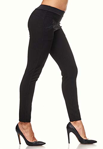Taglie: M / L, L / XL, XL / XXL, Treggings alla moda in nero, Ottimi per essere indossati come leggings sotto le camicie lunghe, Strass di brillantini neri sul fianco, Tasche ai lati, Look Jegging