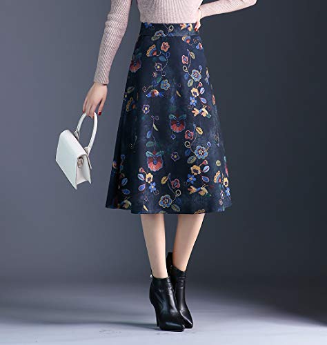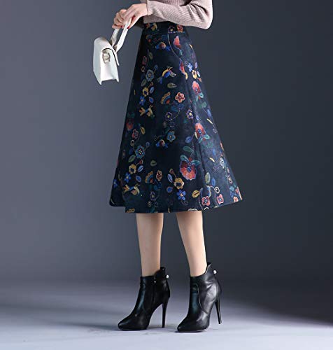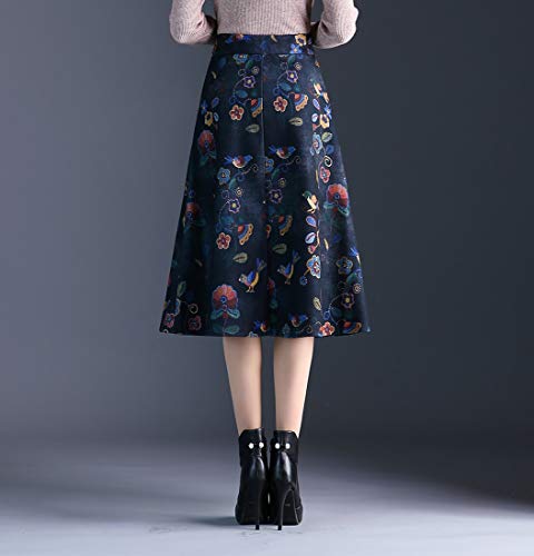 Donna Vintage Elegante Stampa Vita elastica Caldo Gonna di lana Svasata Ragazza Midi Moda A-Line Pieghe Vita Alta Gonne