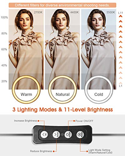 Anello di luce regolabile 10,2″ con 3 modalità 11 Livelli. Toni caldi, toni freddi, normale modalità, Si tratta di una luce perfetta per eliminare tutte le ombre fastidiose!Rendi la tua pelle migliore, i tuoi occhi più attraenti e il tuo streaming in diretta più di successo!