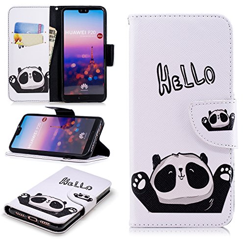 Funyye Morbida Portafoglio Pelle per Huawei P20 Pro,Elegante Carino Hello Panda Modello Design Supporto Stand Porta…