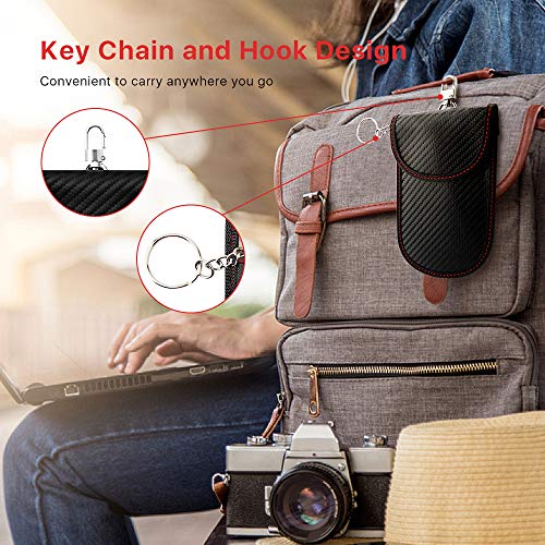 Leggera e facile da trasportare: la borsa blocca il segnale presenta dimensioni ottimali e un design sottile che si adatta perfettamente alla tasca dei jeans. Aggiunto portachiavi e gancio forniscono molteplici modi di tenerlo. Comodo da agganciare al portachiavi o al passante della cintura e portarlo ovunque.