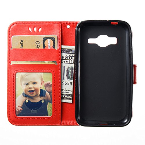 Galaxy J1 Mini Prime Custodia in Pelle Portafoglio Cover Per Samsung Galaxy J1 Mini Prime Custodia, JAWSEU Lusso 3D Modello Puro Colore PU Leather Folio Case Cover per Samsung Galaxy J1 Mini Prime Custodia Cover con Super Sottile Morbido Silicone interno Case e Porta carte di credito Protezione completa Portafoglio Custodia Copertura [Shock-Absorption][Anti Scratch] Protectiva Bumper Custodia per Samsung Galaxy J1 Mini Prime – Farfalla, Rosso