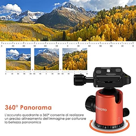 Prestazioni Panoramiche: La testa a sfera da 36mm può ruotare di 360°, lo smorzamento senza olio rende l’operazione più fluido e veloce per ottenere foto perfetto a qualsiasi angolazione. Il livello di bolla aiuta a trovare l’equilibrio del treppiede e l’accurata scala a 360° realizza l’allineamento preciso dell’immagine e facilita la fotografia panoramica. Piastra a sgancio rapido con vite 1/4″ per connessione rapida con fotocamera, compatibile con quasi tutte le DSLR come Canon Nikon Sony ecc.