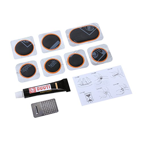 Bike Repair Tool Kit ha 11 diversi tipi di strumenti: 4 x 2.5 cm Diametro circolare cerotti, 2 x 3 cm Diametro circolare, ovale Patch carta vetrata, 1 x 5*3.2 cm, 1 x gomma soluzione colla, 1 x File pezzo e 1 x Scatola di plastica