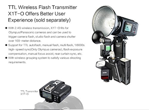 Wireless TTL flash trigger x1t-o offre una migliore esperienza utente (venduto separatamente): con trasmissione senza fili 2.4 G, x1t-o (per fotocamera Olympus/Panasonic) può essere utilizzata per attivare flash, flash da studio e oltre 100 meters otturatore della fotocamera a distanza.Supporto per Autoflash, 1/8000 sincronizzazione ad alta velocità, compensazione dell’ esposizione flash, blocco dell’ esposizione flash TTL, Modeling flash, ecc. con sistema di raggruppamento Wireless (max. 5 gruppi e 32 canali) per soddisfare le diverse esigenze di ripresa