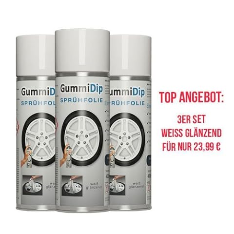Gomma Dip Pellicola Spray, Spray gomma liquida 12000004 Set di 3, 3 x 400 ml, bianco lucido