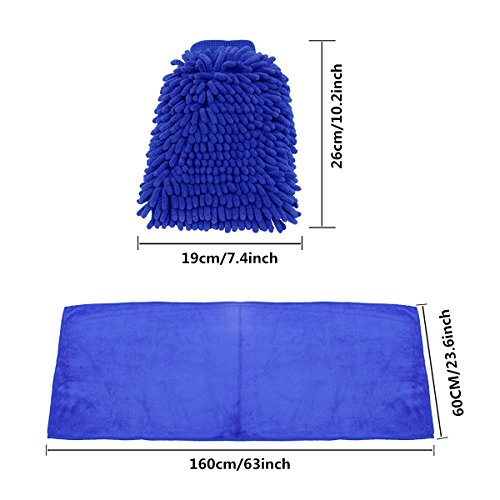 【Guanti di lavaggio a microfibra】 Due pezzi di lavaggio grande e un asciugamano GRATIS premium è l’intero set di cui hai bisogno per pulire la tua auto. Un formato universale misura tutti i guanti di lavaggio.