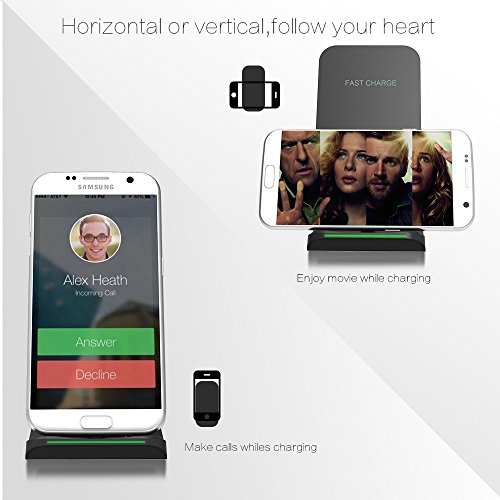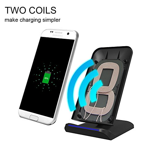 【Modalità Applicabili】: Questo basamento della carica veloce senza fili è compatibile con il Samsung Galaxy Note 5/ Note 8, Galaxy S6 Edge+, Galaxy S8 / S8 Plus, Galaxy S7 e S7 Edge+ ,iPhone 8/ 8Plus, iPhone X ,Altri dispositivi si riserva di addebitare a velocità normale piace Nokia Lumia 920/ 1020/ 928 ,Google Nexus 4 / 5 / 6/ 7,LG Optimus Vu2/ G2/ G3 .