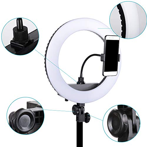 ★Altri accessori★ Portacellulare e mini testa a sfera sono inclusi, è possibile collegare smartphone o fotocamera alla Ring Light. Un telecomando Bluetooth consente la registrazione selfie con lo smartphone