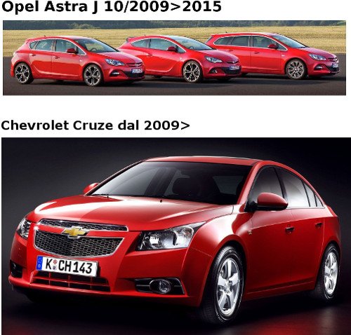 OPEL Astra J dal 10/2009>2015 , 3 / 5 Porte , GTC , Sports Tourer. Chevrolet Cruze dal 2009>.