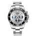 Orologio rotondo con quadrante logato con indici arabi, lancette luminose, tachimetro su castone interno e datario a ore 4