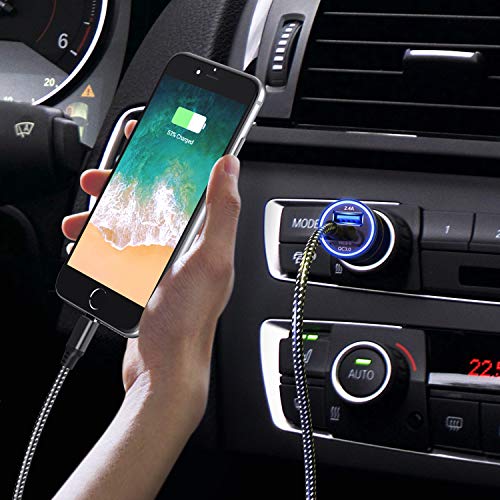 JOOMFEEN QC 3.0+2.4A 30W Caricabatteria Doppio per Auto USB con 3ft Cavo iPhone