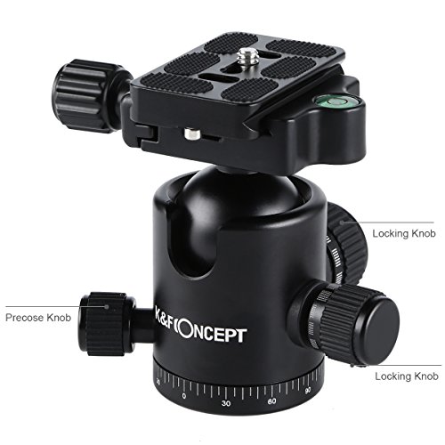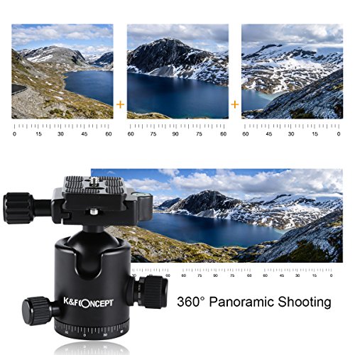 3. Testa a sfera panoramica: due manopole di controllo indipendenti, livella a bolla incorporata e indicatore di 360 gradi scala può controllare ogni regolazione della testa a sfera in modo da ottenere il perfetto angolo di fotocamera.