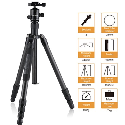 Dimensione nome: K & F Concept professionale in fibra di carbonio treppiede per fotocamera 158,5 cm, nero