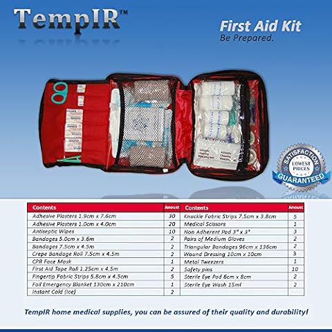 TRANQUILLITA’. Sappiamo che non vorresti essere coinvolto in un DISASTRO O EMERGENZA, così abbiamo incluso tutto ciò di cui potresti aver bisogno per infortuni, ferite, tagli , graffi, slogature, ustioni, ipotermia ed altro. Il nylon è forte e duraturo , e la borsa in vinile non si sgretola o rompe e tutto è in pacchetti STERILI per la tua sicurezza. Forbici e pinzette in metallo di qualità.