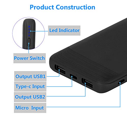 USB TIPO-C INGRESSO / DOPPIA USCITA: Power bank 20000 mAh è dotata di una porta USB C avanzata per caricare tutti i dispositivi USB-C. 2 uscite USB ( 5 V/2,1 A) e un ingresso di tipo-c (5 V/1,5 A). È possibile caricare 2 dispositivi contemporaneamente, la corrente totale è fino a 4,2 A.