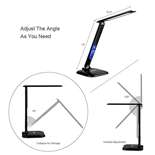 Ledgle lampada da tavolo led 8W pieghevole, dimmerabile lampada da scrivania, schermo LCD, 5V / 1A porta USB di ricarica, 3 modalità di illuminazione, 5 a livello di luminosità, Touch Control, orologio incorporato, calendario, Thermometer- Nero