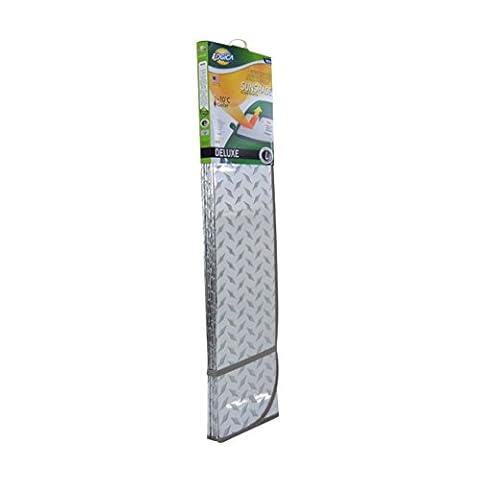 Mantiene l’interno dell’auto fresco e protetto. Incredibile isolamento e una rigidità 50 volte superiore di un parasole classico. Innovativo design per tenere il parasole agganciato allo specchio evitando infiltrazioni di raggi solari. Design reversibile per una protezione perfetta in qualsiasi condizione di sole. Questo parasole Deluxe a 3 strati è progettato con un doppio isolante in schiuma densa ed un sostegno in mylar piatto per creare una rigidità ben 50 volte superiore ad un parasole normale. Designed in USA. Utilizzando questo parasole, la temperatura dell’abitacolo risulterà inferiore e più fresca di 10° rispetto alla temperatura avvertita con altri parasoli. Attenzione: prodotto disponibile in varie misure, per individuare il codice corretto consigliamo di misurare con il metro le dimensioni del parabrezza.
