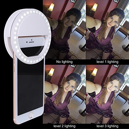 3 livelli di luminosita: Prendere selfie ovunque, locali notturni scuri, feste, campeggio ecc Con questo selfie Light Ring non avremo mai preoccuparsi per l’ambiente buio. Con 3 diversi livelli di luminosita, si trova la perfetta illuminazione necessaria per le vostre foto.