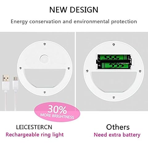 Selfie luce ricaricabile: Built-in batteria ricaricabile con cavo USB offrono il 30% più leggero. Non necessita di batterie aggiuntive.