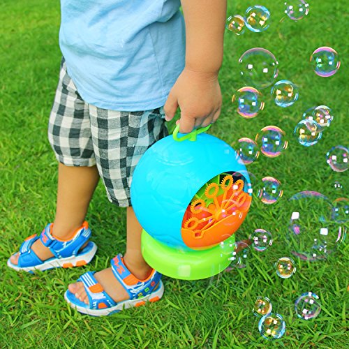 ❤Facile da usare❤ Basta versare la soluzione per le bolle (non inclusa) e ruotare per farla funzionare. Viene fornito con impugnatura retrattile per un trasporto facile, per appenderlo su un albero o per creare bolle in movimento