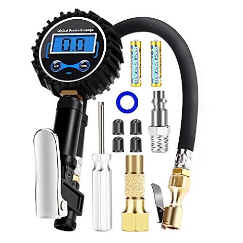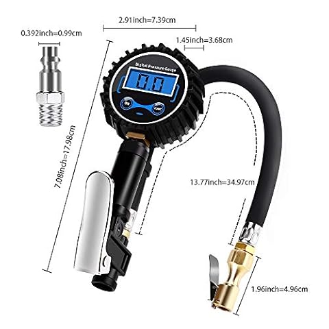 【3 in 1 misuratore di gonfiaggio dei pneumatici】: un gonfiatore per pneumatici + un monitor digitale della pressione dei pneumatici + scarica della pressione dei pneumatici, costruzione solida di servizio pesante, la testa a quadrante di calibro è protetta da una protezione in gomma spessa.