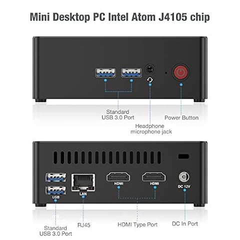 【Mini PC a basso consumo energetico】:Con processore Intel J4105 (4M Cache, fino a 2,5 GHz), processore grafico HD Intel e sistema Windows 10 Pro 64-bit, è straordinariamente veloce da avviare, navigazione Web senza interruzioni, compatibilità multi-task. La ventola incorporata fornisce un potente sistema di dissipazione del calore, migliora significativamente la temperatura del mini pc, una grande scelta per te.