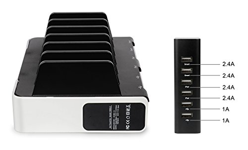 Una stazione per tutti i dispositivi: integrata con l’alimentazione USB, cavi organizzatore, Supporto per smartphone e tablet. Regge costantemente fino a 6 dispositivi come iPhone 7, iPhone 6/6S, iPad, Galaxy S7, Tab, Nexus, LG, Kindle, ecc.. Non serve un ulteriore adattatore di alimentazione e risparmia lo spazio del suo tavolo e della sua stanza.