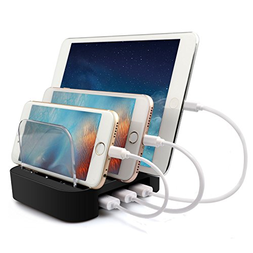 1 Statione per tutti i dispositivi: Regge costantemente fino a 3 dispositivi come iPhone 7, iPhone 6/6S, iPad, Galaxy S7, Tab, Nexus, LG, Kindle, ecc.. Non serve un ulteriore adattatore di alimentazione e risparmia lo spazio del suo tavolo e della sua stanza.