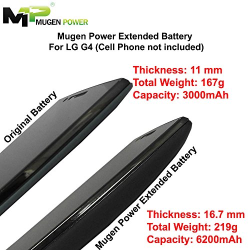 Mugen Potenza – LG G4 815T / G4 dual 818N 6200mAh ha esteso la batteria con la copertura (NFC + Wireless Charging…