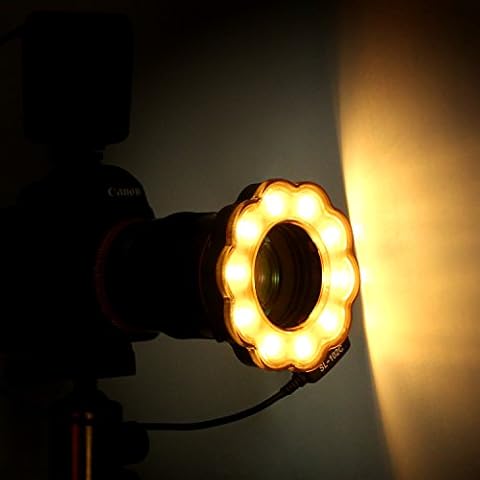 La luce anulare si adatta agli scatti macro, alla ricerca scientifica e alla fotografia dettagliata dei prodotti. È compatibile con le fotocamere Canon, Nikon, Pentax e Olympus ecc.. N.B. la fotocamera e il cavalletto NON sono inclusi!